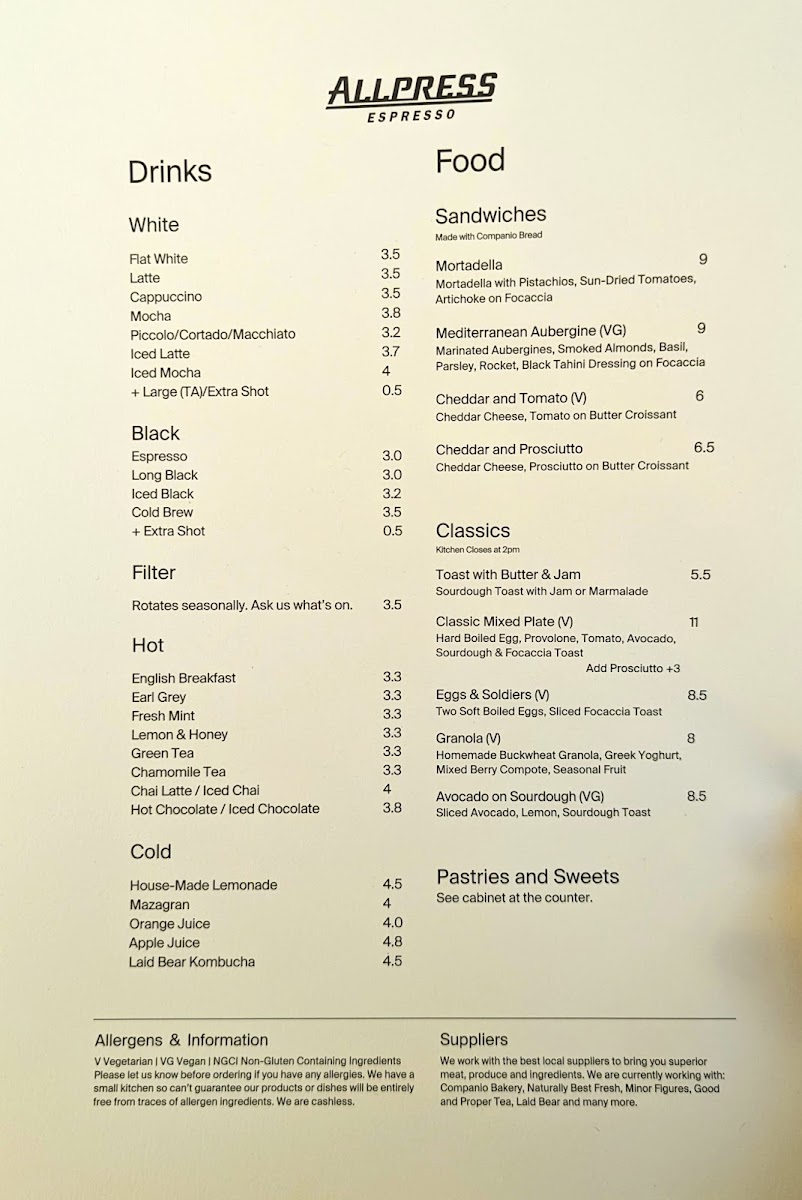 Allpress Espresso Menu Review